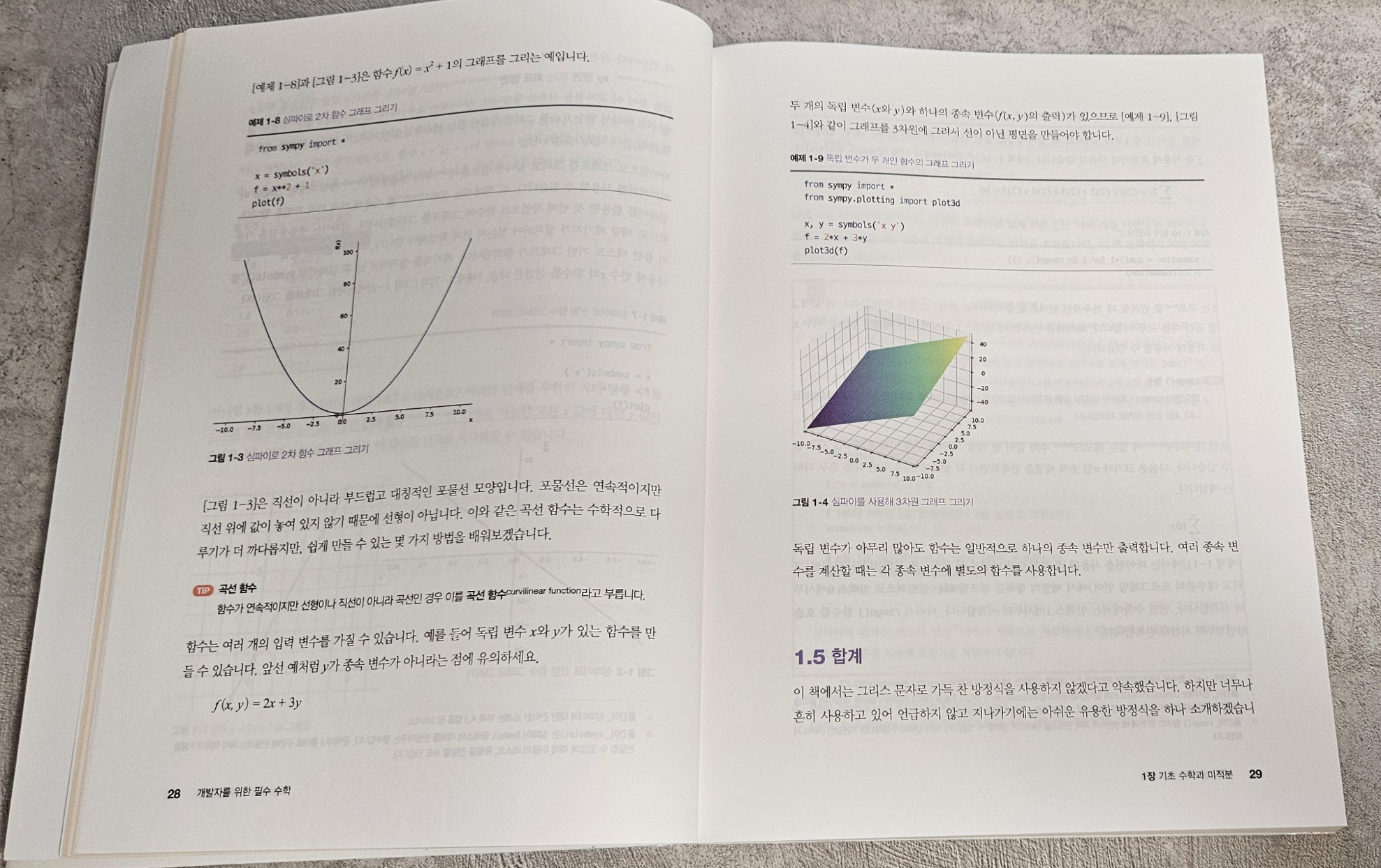 자연수, 정수, 유리수 등등 기초 수 체계부터 시작한다. 연산 순서도 알려주는데, 정말 모든것을 잊어버린 상태라고 해도 그걸 끄집어내서 알려줄 것이니 걱정하지 않아도 될것같다.. 파이썬 예제도 함께있다.