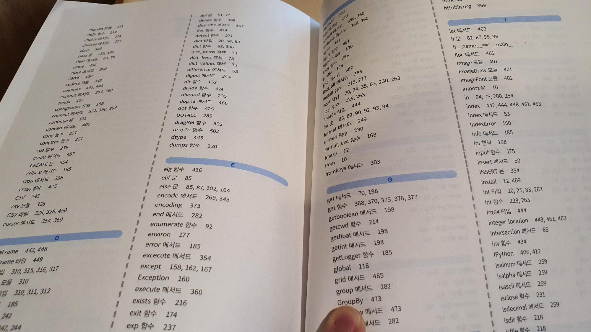 파이썬 스크립트를 어떻게 실행하는지, 어떤 구조로 되어있고 모듈들은 어떻게 가져다 사용하는지 부터 뒷부분은 데이터 조작, SQL, HTML 요청까지 다루고 있는데 가장 강점으로 생각하는 부분은 역시 필요한 내용을 찾아서 보기 쉽게 되어있다는 점이다.
